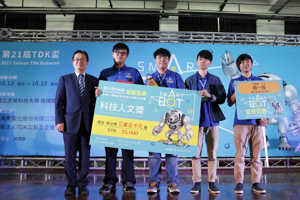 历经10月12日至14日初赛,各组的初赛前八强队伍取得晋级15日上午的复赛资格,15日下午的四强赛冠军战邀来热血主播徐展元及美女体育主播徐裴翊为赛事进行精彩转播,最终竞赛结果也顺利出炉,本校电子工程系王荣爵教授所指导的「哪一队」获得自动组第四名及科技人文奖(不分组)。(获奖名单请上第二十一届TDK杯网站查询,网址 http://tdk.nfu.edu.tw/?p=3518 )