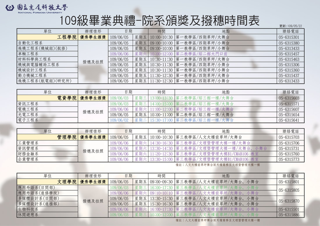 提醒学生颁奖与拨穗务必遵守中央流行疫情指挥中心规定之防疫事项。