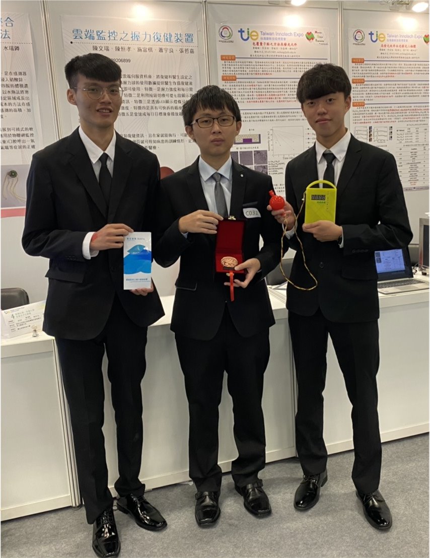恭賀!本系陳文瑞老師指導學生施富棋、蕭宇良、張哲嘉、陳恒孝參加『2020台灣創新技術博覽會』期間109/09/24~109/09/26,以『雲端監控之握力復健裝置』,榮獲銅牌,電子系全體師生恭賀!
